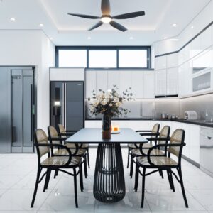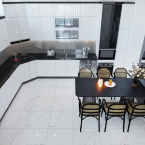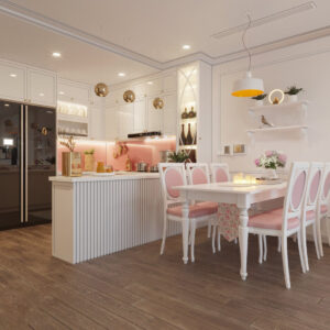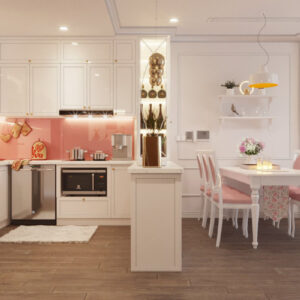 Tủ bếp màu trắng kiểu dáng mềm mại, nhẹ nhàng TBDCT10