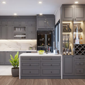 Tủ bếp Tân cổ màu xám xanh đẹp sang trọng TBDCT06
