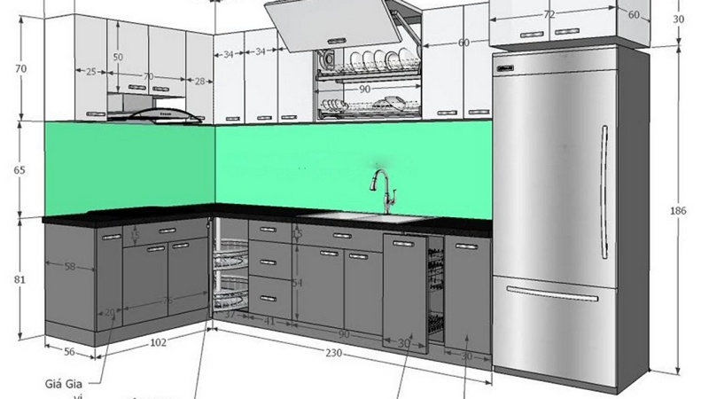 1. Kích thước tủ bếp